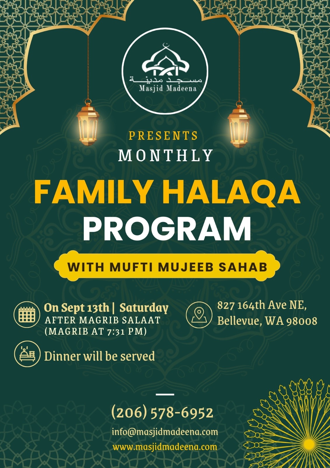 Masjid Madeena vision is to cater the needs of community by providing Islamic services.